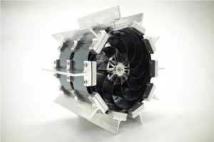 توپی این چرخ، دو طرف را به هم متصل میکند که میتوانند در جهت مخالف بچرخند. بنابراین طراحی فعلی میتواند به صورت شعاعی از قطر جمع و جور 9 اینچ (230 میلیمتر) تا 19.7 اینچ (500 میلیمتر) بدون هیچ لولایی گسترش یابد.